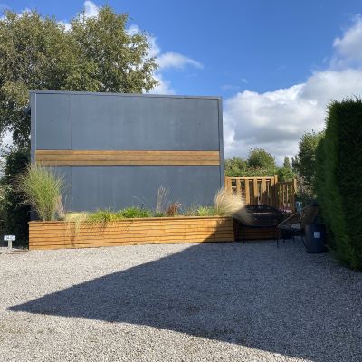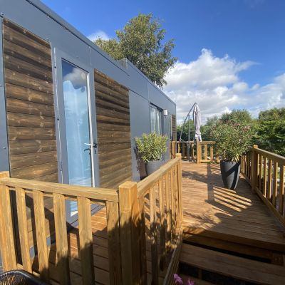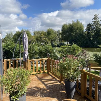 Terrasse bois suspendue avec vue imprenable sur le lac d'Ardres.